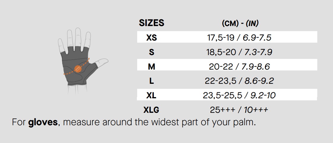 Materialer: Håndbak: 62% polyamid, 38% elastan. Håndflate: 60% polyamid, 40% polyuretan. Tommel: 60% polyeetylen, 32% polyester, 8% elastan. Kile: 80% polyamid, 20% elastan