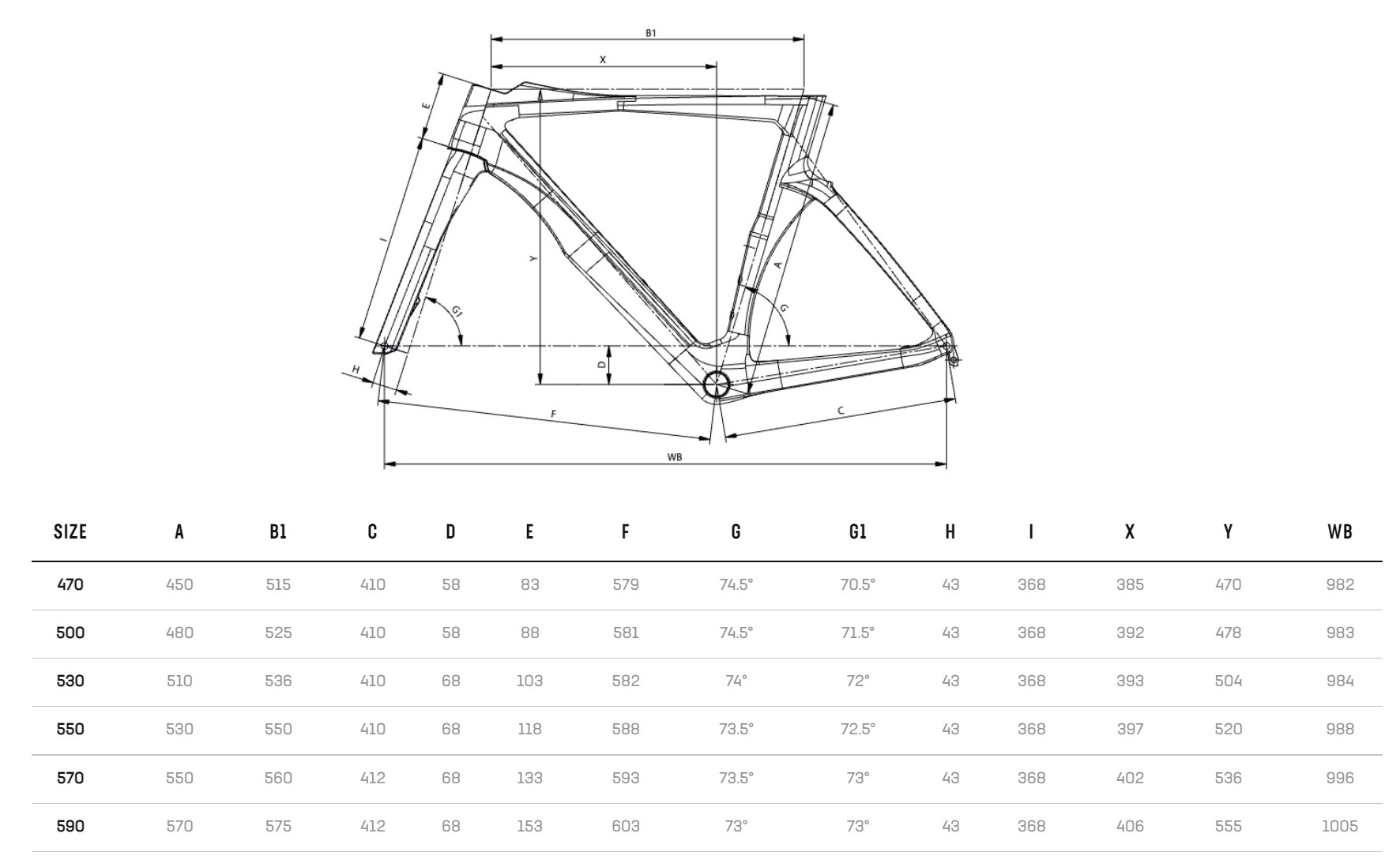 Oltre sin aeroformede ramme og gaffel er laget av høykvalitets karbon og har et rett 1.5" styrerør, pressfit krankhus og gjennomgående akslinger. Rammen og gaffelen yter utrolig bra når det kommer til stivhet og respons og setter en helt ny standard når det kommer til aerodynamikk. Oltre kan settes opp med både mekaniske og elektroniske komponentgrupper, har en integrert setepinneklemme med tilgang i hjørnet mellom overrør og seterør og selvsagt komplett innvendig kabelføring slik at cockpiten ser ren og estetisk tiltalende ut. Denne sykkelen er utstyrt med Shimano sitt elektroniske og semi trådløse Dura Ace Di2 girsystem med matchende hydrauliske skivebremser. Kontakten med underlaget styres av Pirelli P ZERO Race SL dekk som er montert på et Reparto Corse hjulsett i karbon med 50 mm profil foran og 65 mm bak.