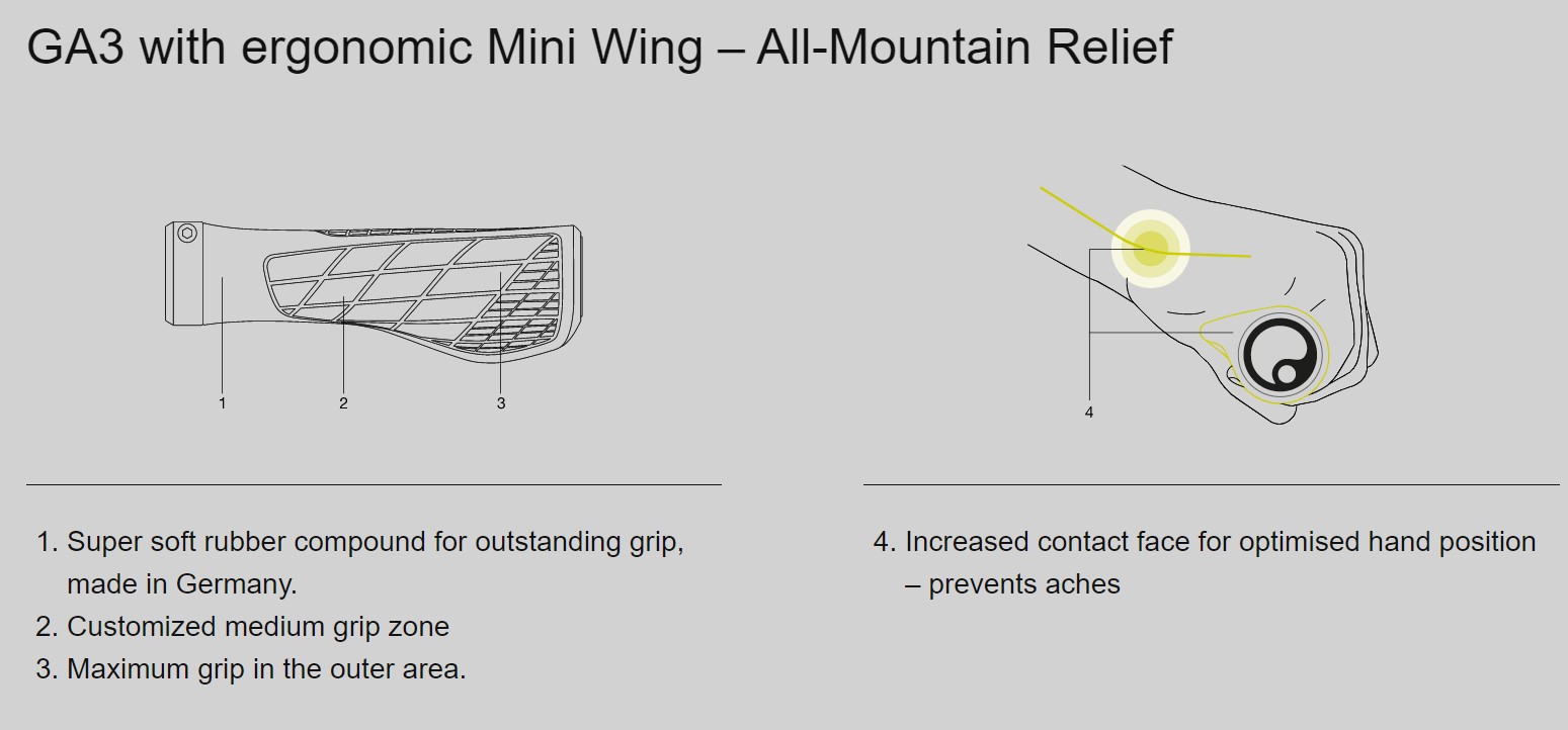 Kan det beste fra to verdener bli enda bedre? Ergon har klart kunststykket med en oppdatert GA3 for å passe en hver hånd. Her finner du den perfekte kombinasjonen av ergonomisk vinge og MTB-grep. Dette betyr at du får enda bedre kontroll på når du sykler på stier, uansett hvilken størrelse hendene dine er! Håndleddene dine er optimalt støttet og fri for smerter mens den perfekte ergonomien lar deg pushe deg selv helt til grensen. GA3 gir deg den ultimate kontrollen til enhver tid. Dette er de perfekte holker for stisykling, cross country og MTB-touring.