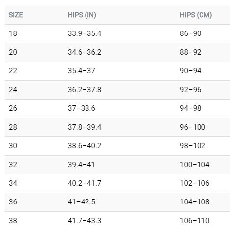 - Størrelser: 20 - 32 (Vi anbefaler at du velger en størrelse mindre enn hva du gjør i vanlige treningsshortser)