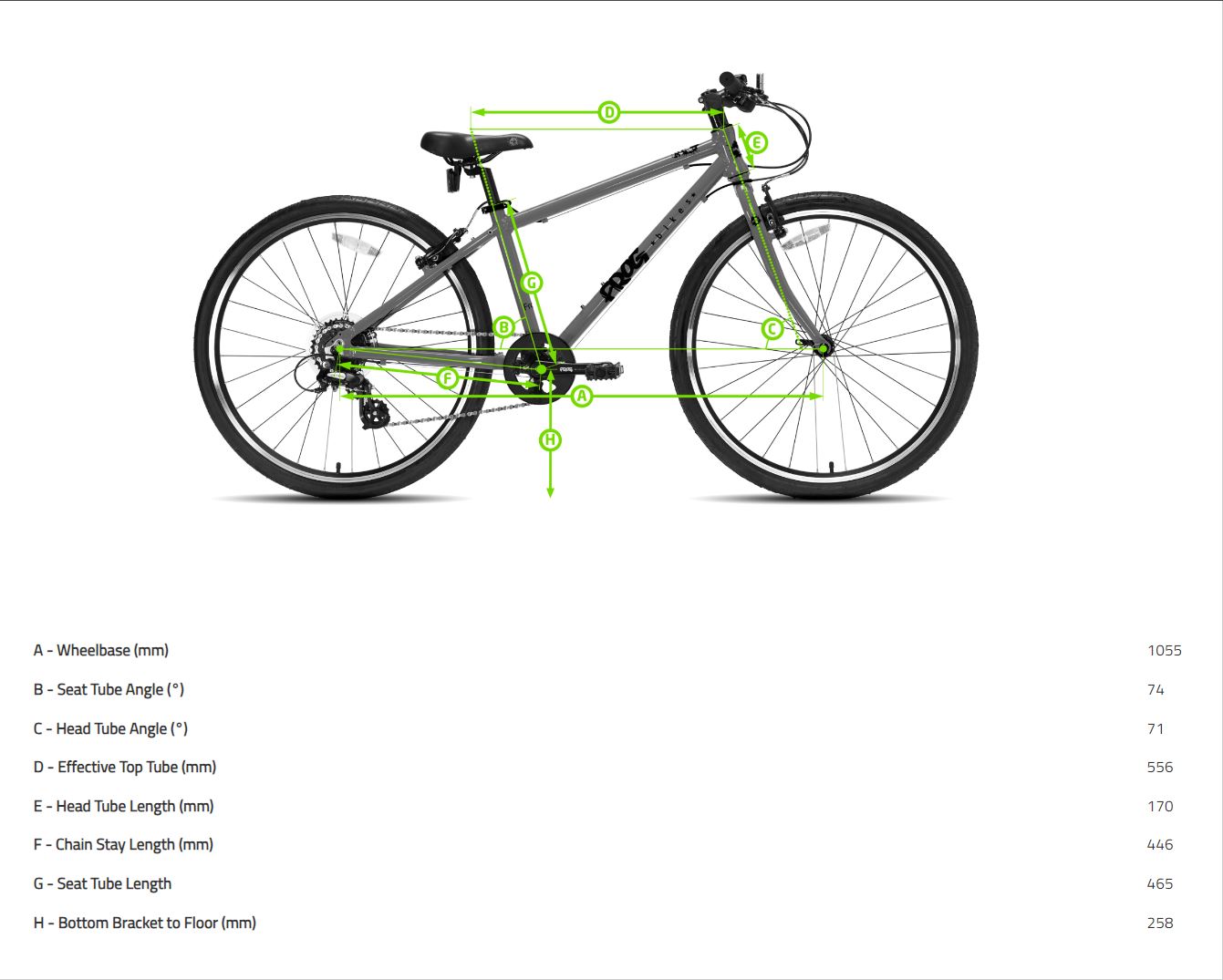 Denne sykkelen er en del av "Hybrid Bikes" serien av sykler fra Frog Bikes og er en perfekt allrounder. Den passer like bra til både jenter og gutter og fungerer utmerket på oppkjørte sykkelstier i skogen og på skoleveien. Frog 74 er også en del av Frog sine "Push the Limits" sykler som har et mer voksent design og er laget for å følge barnet opp i ungdomsårene.