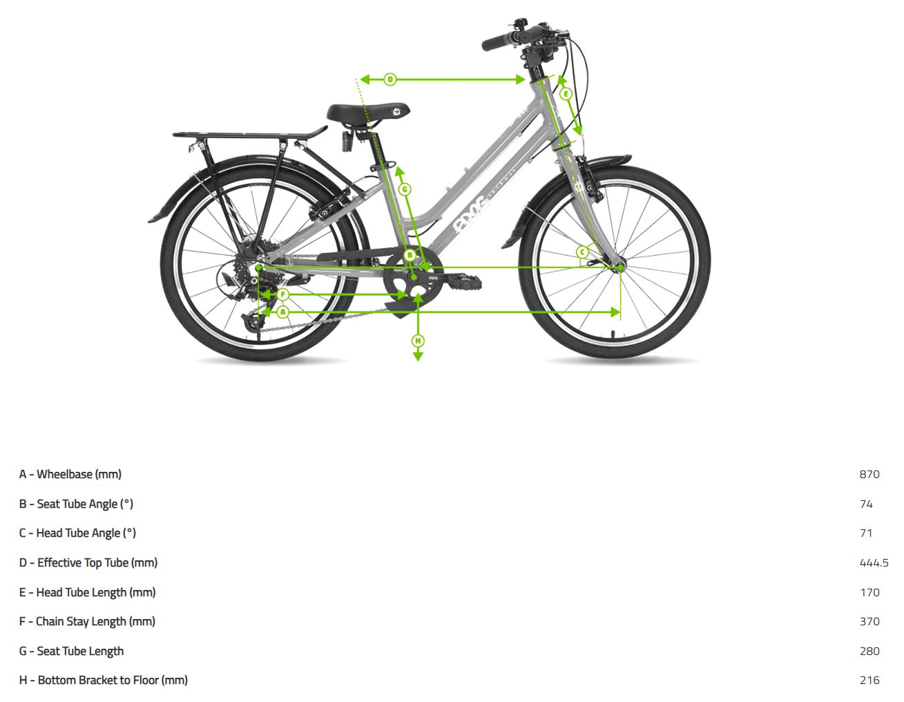 Frog City 53 har en lett og solid ramme i aluminum og er uttyrt med 8 gir som er enkle å bruke og gjør at barnet kan lære å bruke ulike gir til ulikt terreng. Bremsehendlene fra Tektro er laget for små barnehender og er enkle å nå. Både styret og setet kan justeres i høyden slik at sykkelen kan vokse sammen med barnet og gjør at du ikke må bytte ut sykkelen innen kort tid. Frog sine sykler inspirerer barn til å sykle og å komme seg ut når anledningen byr seg.