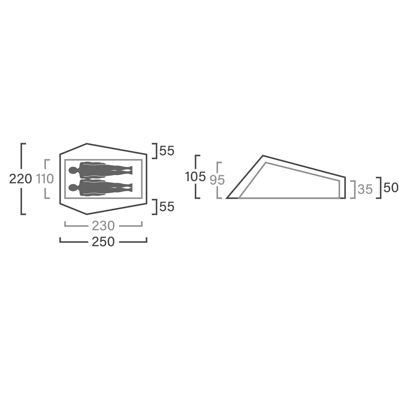 En aerodynamisk konstruksjon og optimalisert stangkonfigurering gjør at Ringstind Superlight 2 er perfekt for deg som ønsker et lett telt med akkurat nok plass for å ha det komfortabelt.