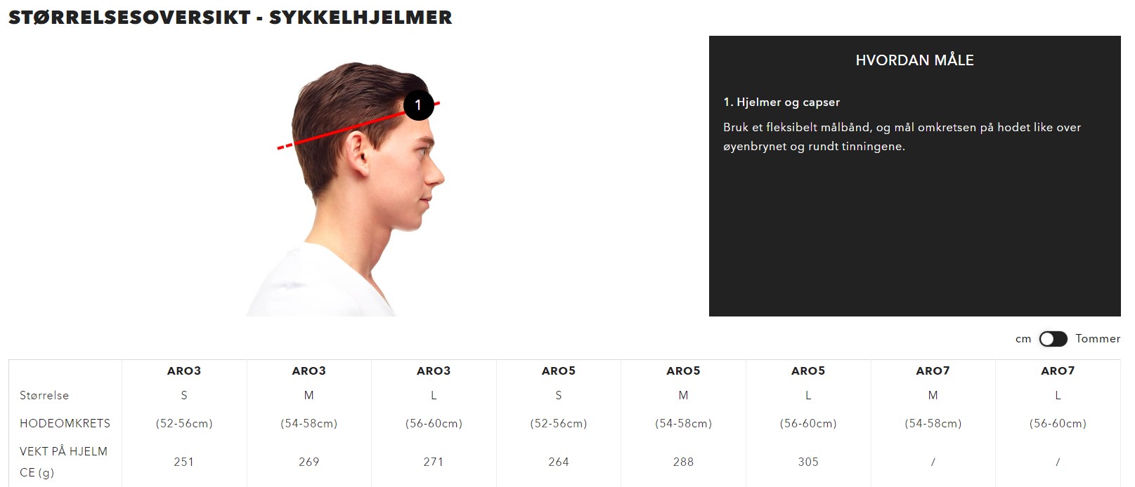 Størrelser: S (52-56 cm), M (55-59 cm), L (58-61 cm)