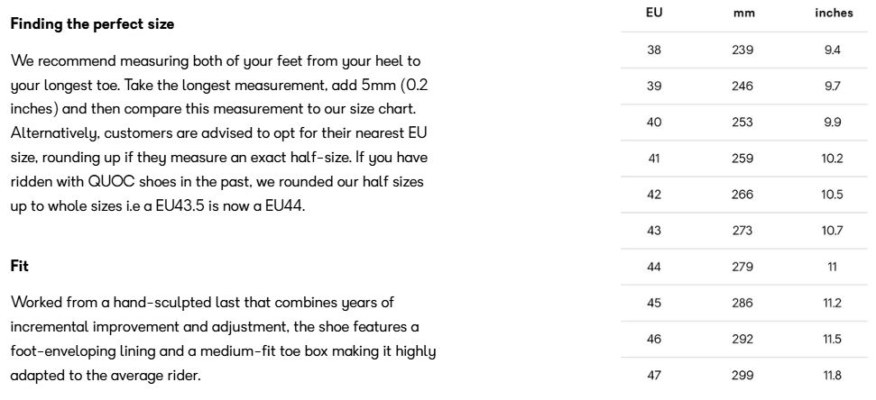 QUOCs egenutviklede enkeltdial lukkesystem gir mikrojusterbar presisjon og støtte, styrt av stilige sikksakk-snøreføringer for jevn trykkfordeling. En hurtigutløsningsfunksjon gjør det enkelt å ta skoen av og på, mens strategisk plasserte ventilasjonshull sikrer en pustende opplevelse som passer alle klima og årstider.