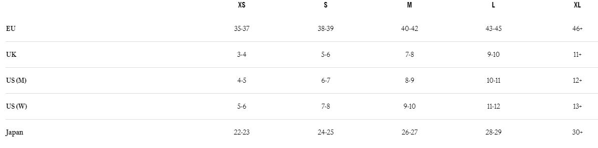 - Størrelser: XS (35-37), S (38-39), M (40-42), L (43-45), XL (46+)