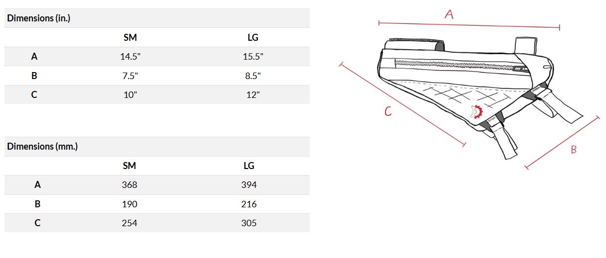 Choss er laget for å tåle tøffe forhold med 100 % resirkulerte materialer, slitesterke glidelås- og stretchpanelkombinasjon og silikonbelagte borrelåsfester. Hovedrommet har en nettinglomme og er kompatibelt med drikkesystemer. Mindre gjenstander kan oppbevares i den flate venstre sidelommen, som også har en kabelutgang. Choss kommer i to størrelser som passer de fleste hardtail-rammer og noen fulldempede sykler.
