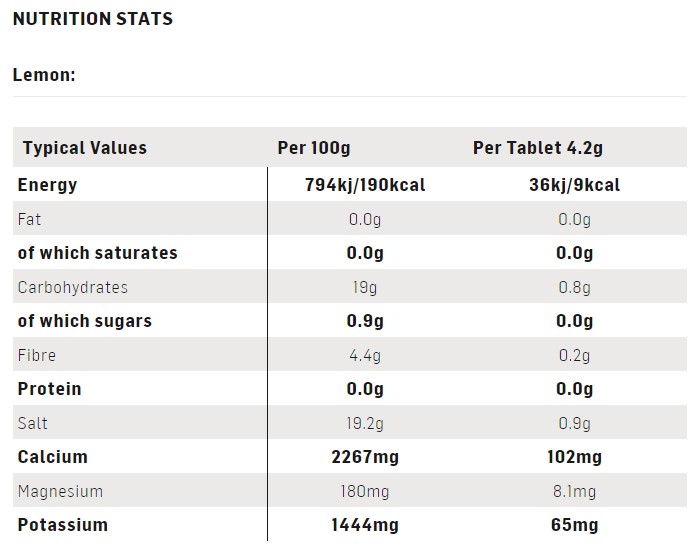 • Ingredienser: Citric Acid, Electrolytes 37% (Sodium Bicarbonate, Sodium Chloride, Calcium Carbonate, Potassium Chloride, Tricalcium Phosphate, Magnesium Carbonate), Sorbitol, Inulin, Colour (Beetroot Red), Natural Flavouring, Elderberry Powder (2.3%), Starch, Sweetener (Sucralose), Vitamins (Pyridoxine Hydrochloride, Riboflavin, Thiamin)