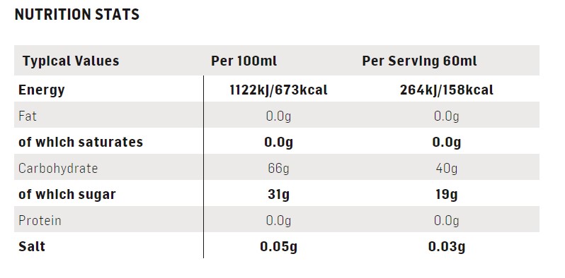- Ingredienser: Water, Maltodextrin (from Maize) (29%), Fructose (22%), L-Taurine, Cognizin(R) Citicoline, Caffeine Anhydrous, L-Theanine, Flavourings, Acidity Regulators (Citric Acid, Sodium Citrate), Gelling Agents (Gellan Gum, Xanthan Gum), Preservatives (Sodium Benzoate, Potassium Sorbate), Sodium Chloride