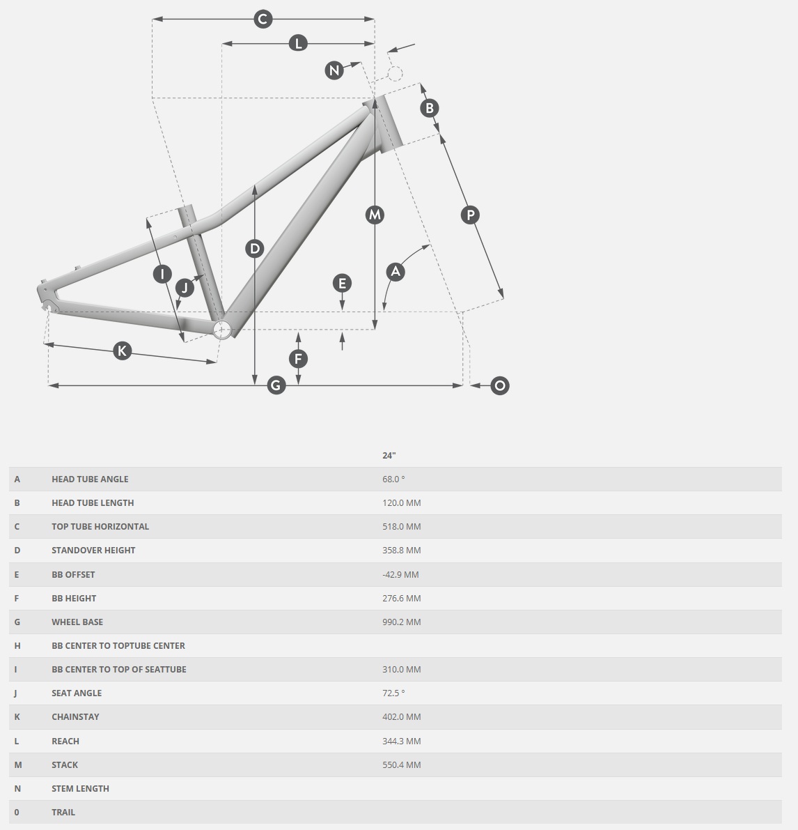 - Lett og solid ramme i Alloy 6061 med barnegeometri.