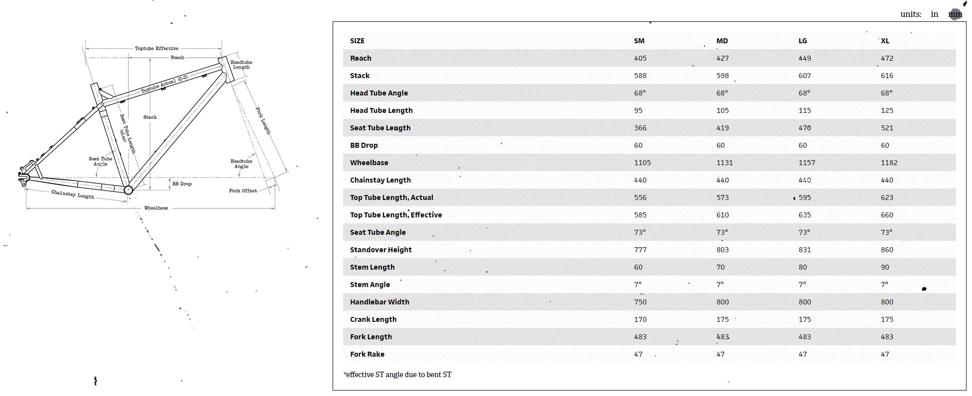 Lang overrør, korte setestag og en headtubeangel på 68 grader gjør den stram og manøvrerbar på raskt, teknisk terreng.