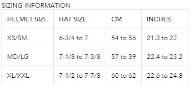 - Størrelse: XS/SM (54-56 cm), MD/LG (57-59 cm), XL/XXL (60-62 cm)